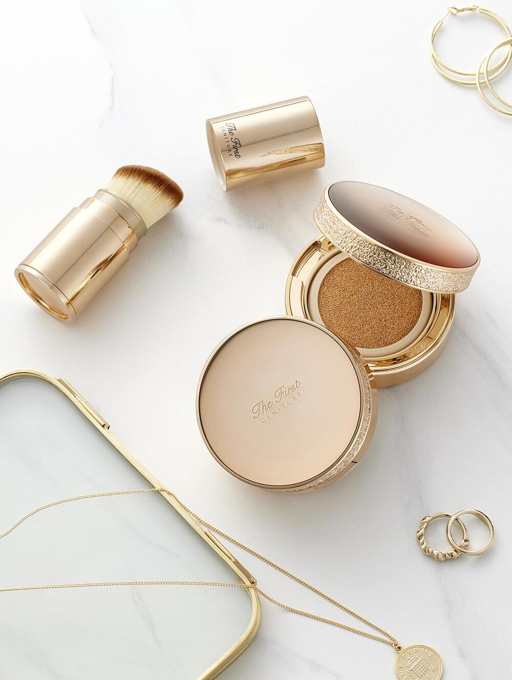 - O HUI | The First Geniture Ampoule Cover Cushion — интеллектуальный ампульный кушон с золотым пептидом. Благодаря технологии клеточного пробуждения, он работает как активная омолаживающая сыворотка: возвращает коже плотность и энергию молодости, создавая безупречное покрытие с эффектом живого атласного сияния.