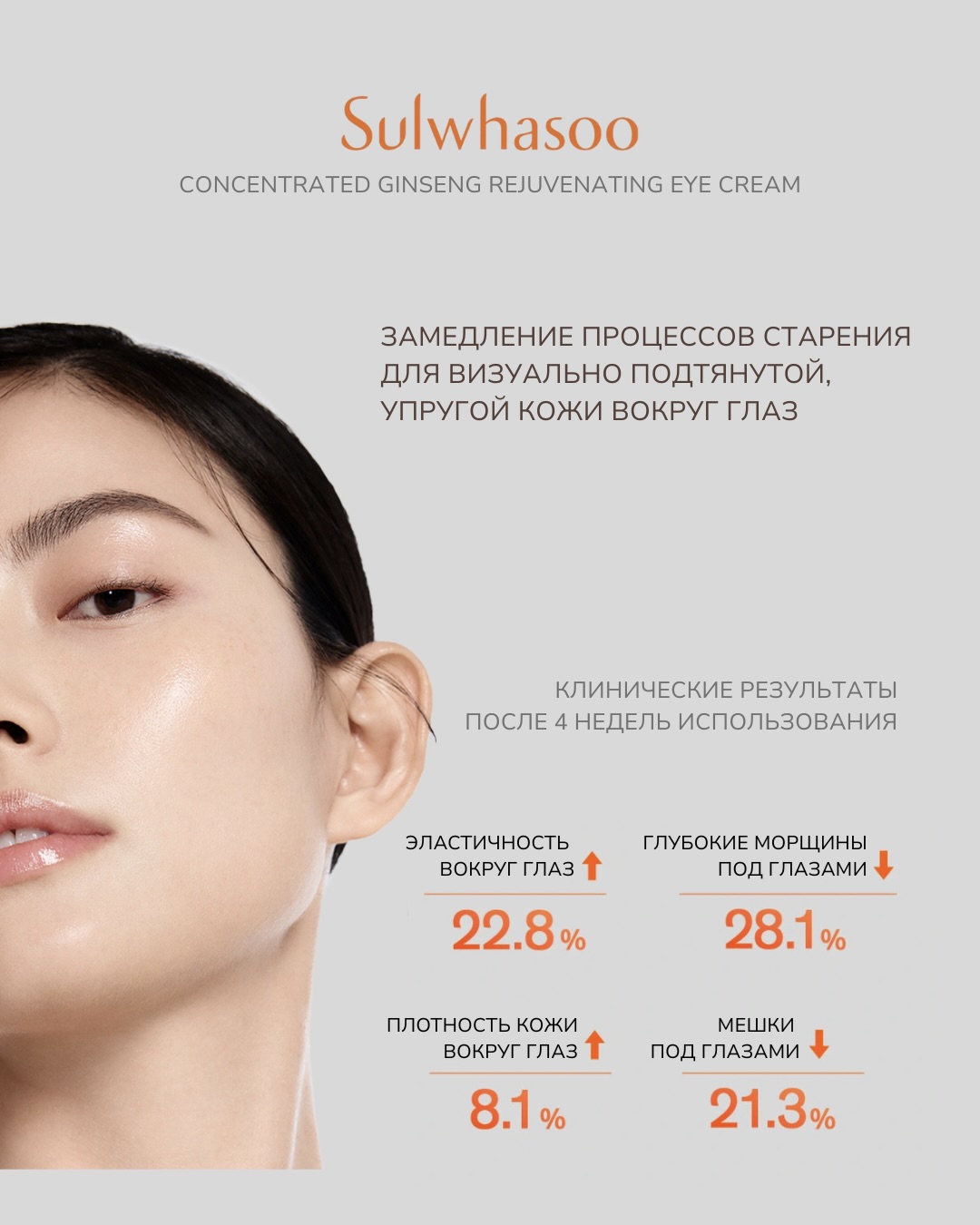 +22,8% — улучшение внутренней упругости кожи вокруг глаз