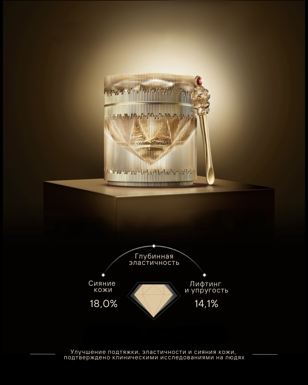 Благодаря эффектам The First DiaDein Solitaire Cream кожа сияет великолепием и становится удивительно упругой.