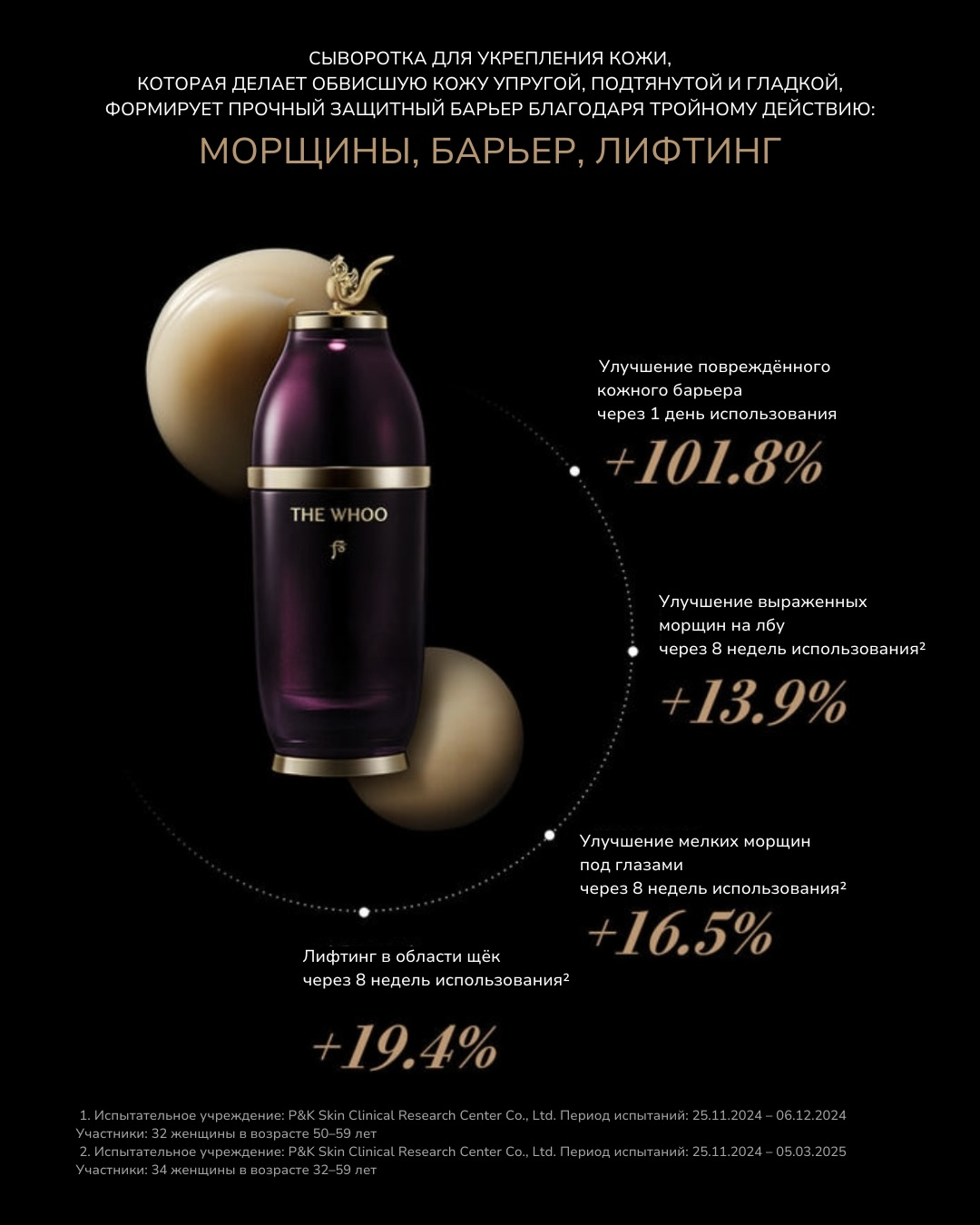 СоставPurified Water, Dipropylene Glycol, Dimethicone, Glycerin, PCA Dimethicone, Trehalose, Butylene Glycol, Caprylyl Trimethicone, Isostearyl Isostearate, Glyceryl Stearate, 1,2-Hexanediol, Beeswax, Betaine, Panthenol, Stearyl Dimethicone, Bis-PEG-18 Methyl Ether Dimethyl Silane, Sucrose Polystearate, Phytosteryl/Isostearyl/Cetyl/Stearyl/Behenyl Dimer Dilinoleate, C14–22 Alcohols, PEG-100 Stearate, Methyl Trimethicone, Hydrogenated Polyisobutene, Dimethiconol, Sucrose Stearate, Hydrogenated Poly(C6–14 Olefin), Squalane, Hydrogenated Lecithin, Ceramide NP, Glycosphingolipids, Ammonium Acryloyldimethyltaurate/VP Copolymer, Palmitic Acid, Stearic Acid, Irish Moss Extract, Phospholipids, Macadamia Seed Oil, Triethylhexanoin, Carbomer, Arachidyl Glucoside, Shea Butter, C12–20 Alkyl Glucoside, 2,3-Butanediol, PEG-10 Rapeseed Sterol, Adenosine, Glyceryl Behenate, Polysorbate 20, Cholesterol, Caprylic/Capric Triglyceride, Ginsenosides, Serine, Arginine, Glycereth-20, Pentaerythrityl Tetra-di-t-Butyl Hydroxyhydrocinnamate, Pentylene Glycol, Bacillus Ferment, Poloxamer 188, Polysorbate 60, Citric Acid, Cetyl Palmitate, Glyceryl Distearate, Myristyl Myristate, Sodium Stearoyl Glutamate, Sodium Ascorbyl Phosphate, Tranexamic Acid, Asparagus Root Extract, Propylene Glycol, Palm Oil, Cottonseed Oil, Polygonum Multiflorum Root Extract, Polygonatum Odoratum Rhizome/Root Extract, Ginseng Extract, Red Ginseng Extract, Ethanol, Kalmegh Extract, Bidens pilosa Extract (Ulsan), Cordyceps militaris Extract, Cordyceps Extract, Ferulic Acid, Oryzanol, Quercetin, Resveratrol, Sodium Sulfite, Linseed Oil, Andrographolide, Sodium Metabisulfite, Tris(Tetramethylhydroxypiperidinol) Citrate, Thyme Extract, Tocopherol, Buddleja Extract, Cornus Officinalis Fruit Extract, Pyridoxine HCl, Angelica Gigas Root Extract, Walnut Extract, Glutamic Acid, Schisandra Chinensis Fruit Extract, Jujube Extract, Rehmannia Root Extract, Anemarrhena Root Extract, Angelica Acutiloba Root Extract, Phyllostachys (Weaver Bamboo) Stem Extract, Safflower Seed Extract, Cinnamomum Cassia Bark Extract, Coptis Root Extract, Cuscuta Seed Extract, Longan Fruit Extract, Ganoderma Lucidum Stem Extract, Kaempferol, Kelp Extract, Lotus Seed Powder, Paeonia Suffruticosa Root Extract, Phellodendron Bark Extract, Phloretin, Knotweed Extract, Peach Seed Extract, Paeonia Lactiflora Root Extract, Belamcanda Chinensis Root Extract, Loquat Leaf Extract, Houttuynia Cordata Extract, Liriope Platyphylla Root Extract, Perilla Leaf Extract, Platycodon Grandiflorum Root Extract, Apricot Kernel Extract, Schizonepeta Extract, Scutellaria Baicalensis Extract, Trichosanthes Root Extract, Coltsfoot Flower Extract, Ginseng Root Protoplast, Poria Cocos Sclerotium Extract, Goji Berry Extract, Atractylodes Rhizome Extract, Ginkgo Biloba Extract, Cyperus Rotundus Extract, Eucommia Ulmoides Bark Extract, Cassia Seed Extract, Quince Extract, Self-Heal Leaf Extract, Glycoprotein, Deer Antler Velvet Extract, Atractylodes Lancea Root Extract, Tangerine Peel Extract, Globe Flower Extract, Black Soybean Extract, Lindera Root Extract, Trifoliate Orange Extract, Pine Mushroom (Matsutake) Extract, Zanthoxylum Fruit Extract, Ginger Extract, Ganoderma Lucidum Extract, Ginseng Leaf/Stem Extract, Pomegranate Extract, Ethylhexylglycerin, Cimicifuga Racemosa Root Extract, Yam Root Extract, Lithospermum Root Extract, Red Clover Leaf Extract, Chive Seed Extract, Achyranthes Root Extract, Polygala Root Extract, Tribulus Terrestris Fruit Extract, Black Truffle Extract, Epimedium Extract, Tromethamine, Trisodium EDTA, Titanium Dioxide (CI 77891), Mica, Red Iron Oxide, Fragrance, Linalool, Limonene, Hexyl Cinnamal, Benzyl Benzoate, Benzyl Salicylate